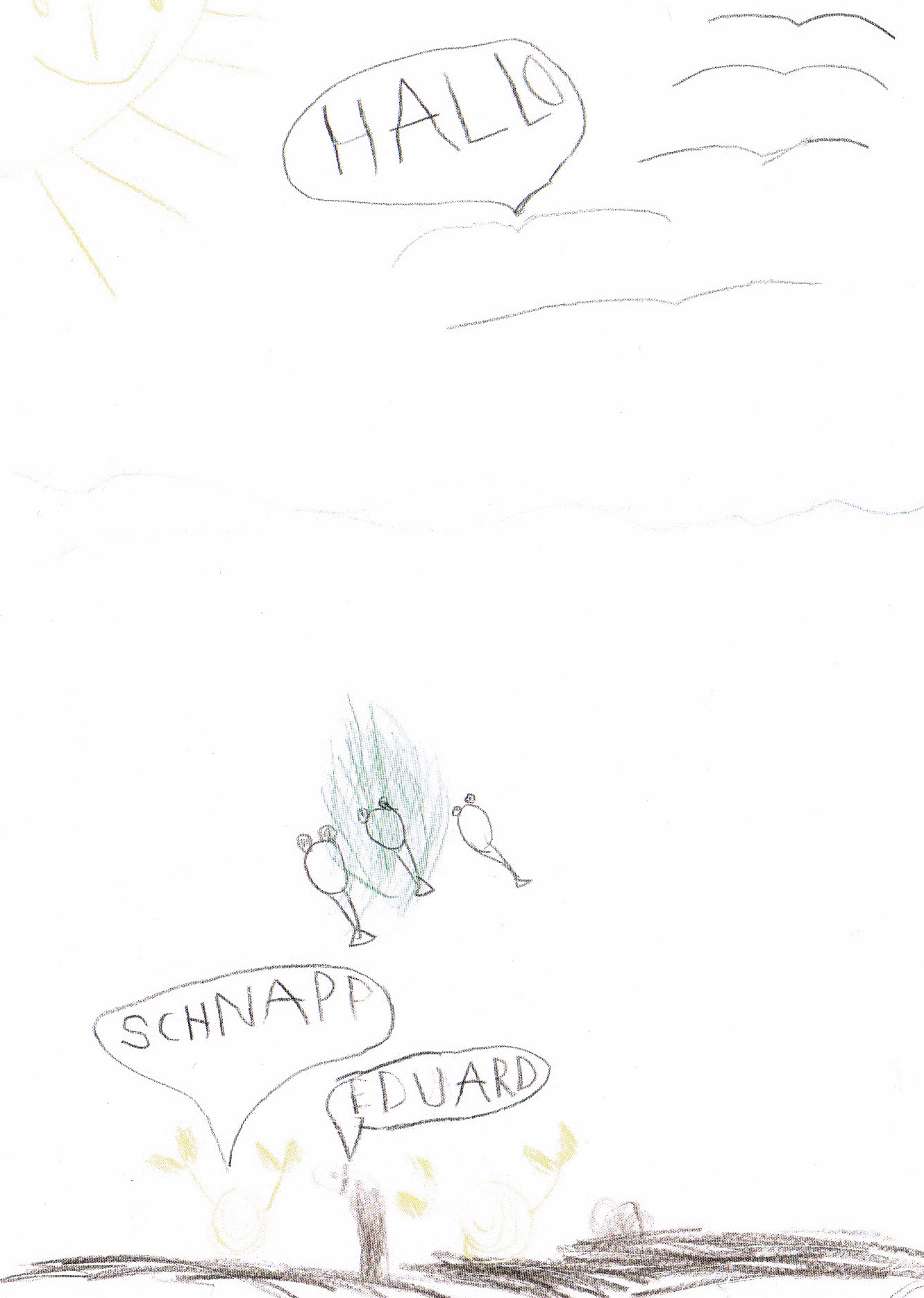 „Der klingt gut, Schnapp!“ sagt Eduard. „Bis morgen!“und verschwindet im Boden.
