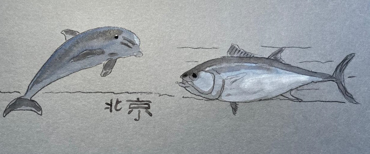 這就是中國,這就是北京 „Das bedeutet: 'Hier ist China, hier geht es nach Beijing' (so heißt die Stadt bei den Chinesen und bedeutet Nordhauptstadt),“ erklärte der Fisch, „da wohnt meine Freundin Chan Lee. Sie ist ein Delfin . Die gibt es nämlich nicht nur im Meer.“ Der Kanal schlängelte sich durch Wiesen und Wälder, vorbei an Häusern mit geschwungenen Dächern, Straßen und Eisenbahnen.