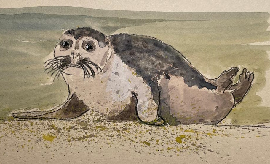 Dort vor Amrum könnt ihr sie im Watt treffen. Müßt ihr nur genau hinsehen, Eduard ist der größere mit den roten Streifen.