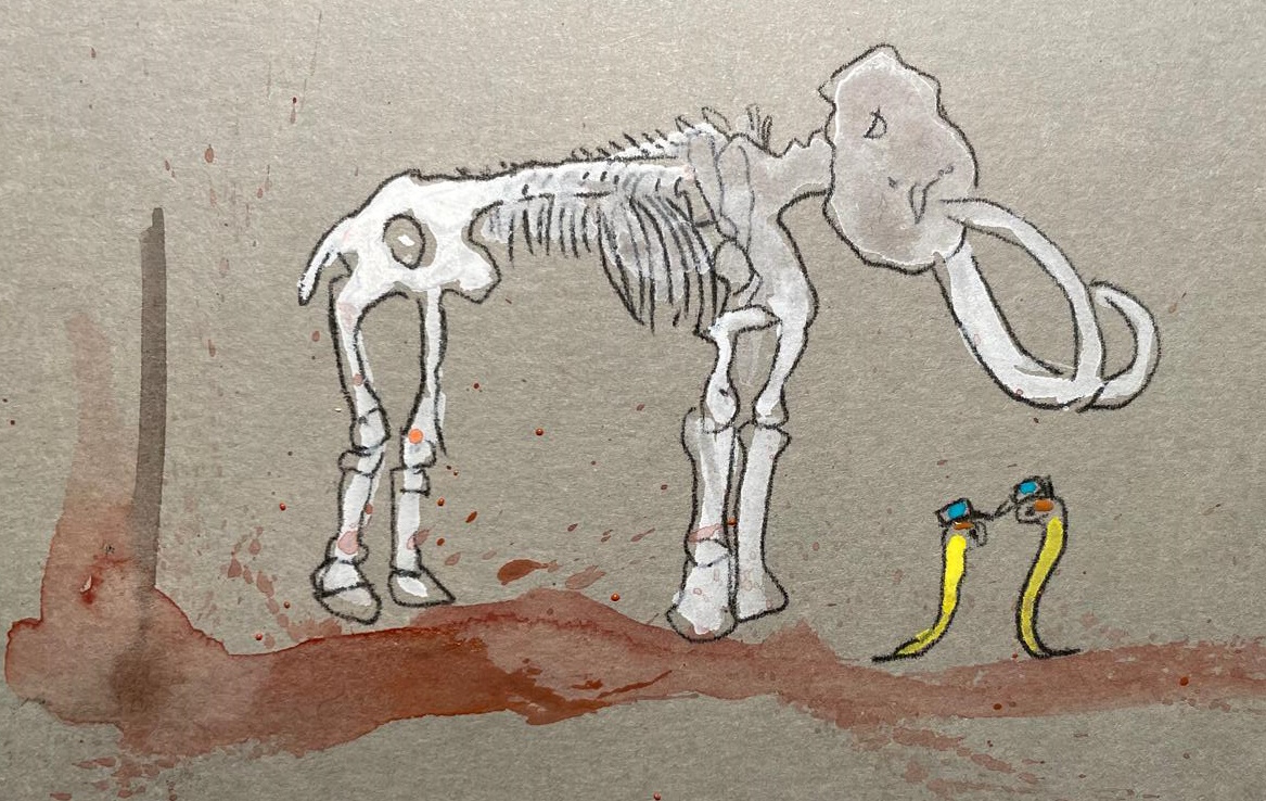 „Oh,“ sagt Gospodin,“ hier ist ein Mammut vor vielen zehntausend Jahren gestorben, im Schlamm versunken und eingefroren.